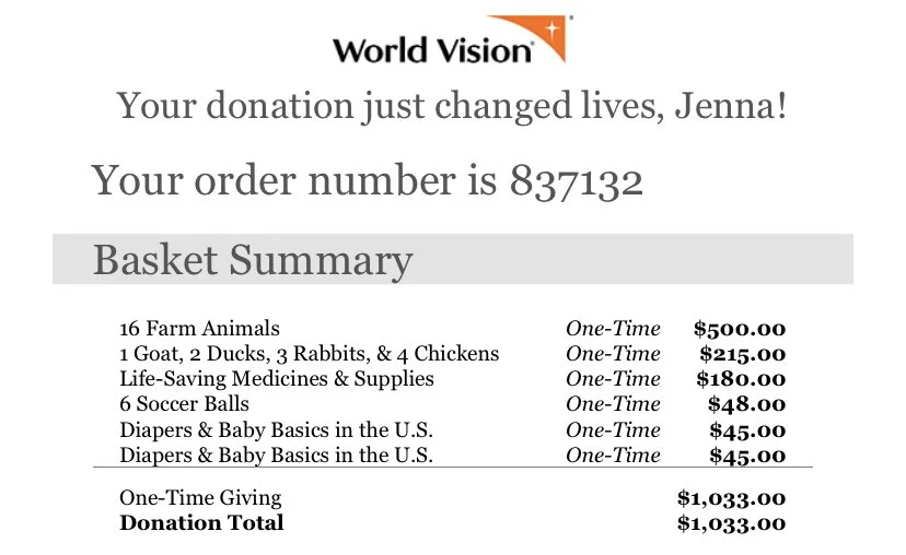However, on one occasion, it was our daughter Jenna who intercepted the catalog from a group called World Vision.